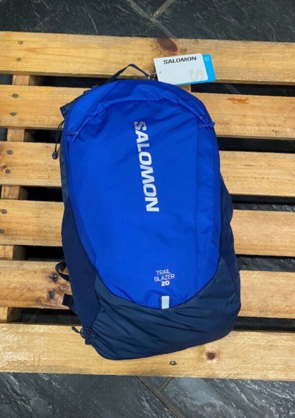 Salomon Trailblazer 20L LC2059600 motxila, urdin kolorean, aukera bikaina da aire zabaleko abenturetarako eta kirol jardueretarako. 20 litroko edukierarekin, egun bateko mendi ibilaldiak, trail running saioak edo eguneroko erabilera aktiborako aproposa da.
